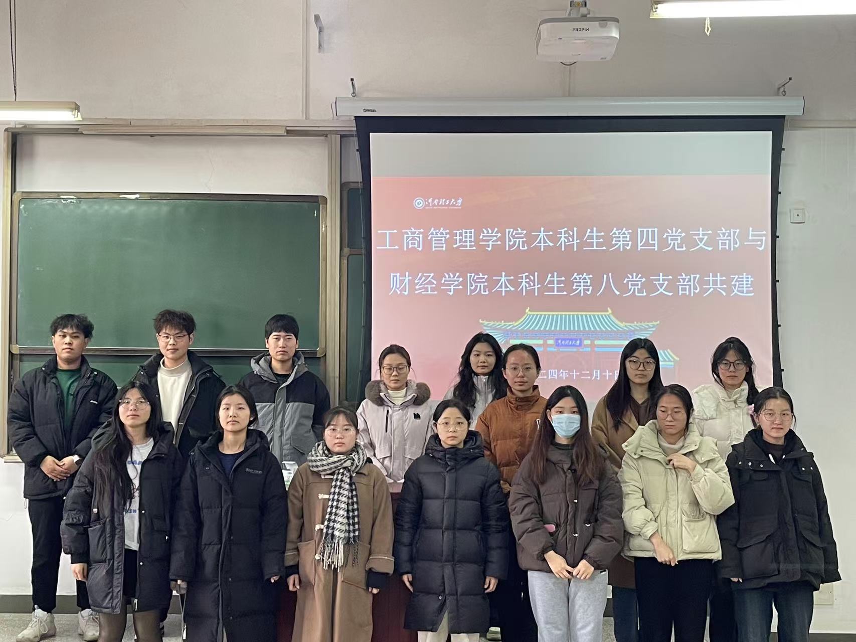 为深入学习贯彻党的二十大精神,加强基层党组织建设,促进学院间党支部的交流与合作,12月10日下午,英国上市公司365第四党支部与财经学院第八党支部在经管楼1204共同开展了一场意义深远的支部共建活动。活动聚焦党建引领、专业交流与社会服务,旨在整合双方资源优势,创新党建工作模式,提升党员素质与服务能力,为学院发展和社会进步贡献力量。两支部共计十余人参加此次活动。