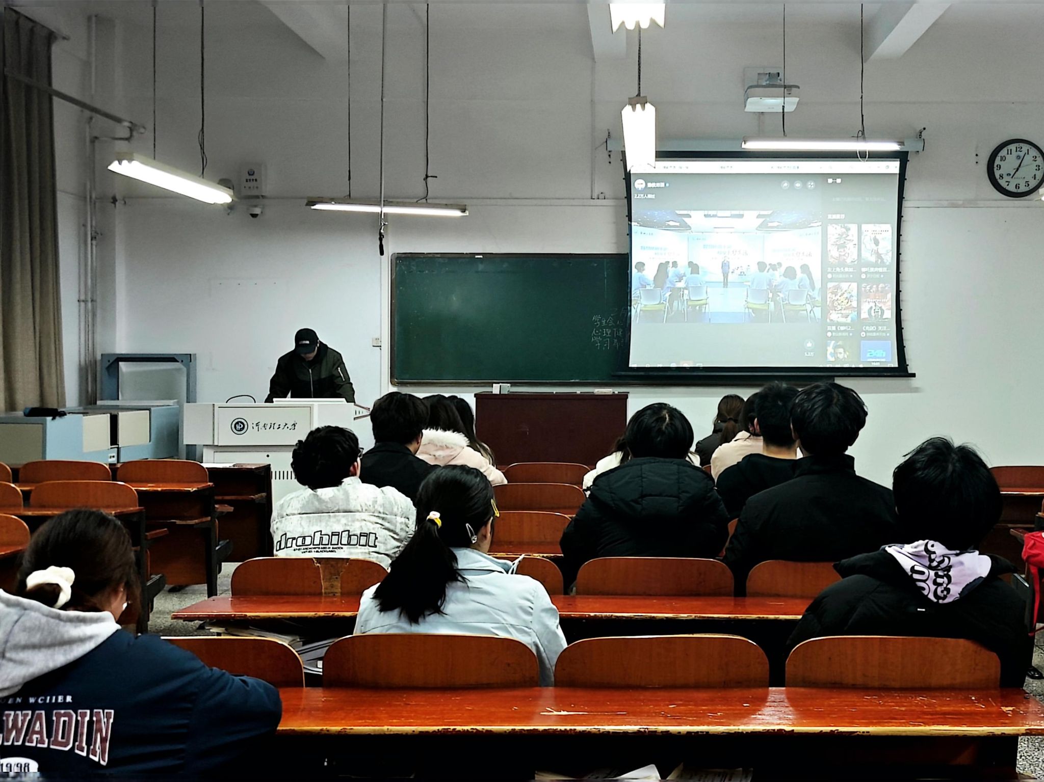 为加强心理委员对智能手机使用的正确认识,帮助他们更好地引导和服务同学们,公司心灵驿站于2月26日在经管楼1103教室开展了以“智慧使用手机 畅享美好生活”为主题的心理健康公开课观看学习活动。本次活动共邀请了16名心理委员,并由心灵驿站23级负责人周保君担任主持。